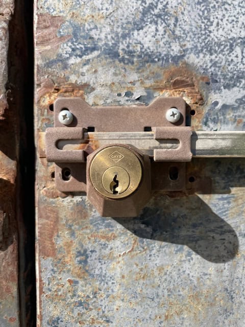Medan gräsmattan torkade upp lite efter nattfukten plockade jag ihop häcksax mm för att klippa det vildvuxna på utsidan mot vägen. När jag gått ut genom porten och låste från utsidan följde halva portlåset med och jag fick det i handen. Oops, utlåst utan möjlighet att komma in igen. Blev tvungen att klättra in till grannens odling och som tur var verkade inte vakthundarna vara där. Klättrade sen över vårt staket och in på vår tomt. Med telefonkonsultation hemifrån fick jag tips om att skruva bort låsdelen på insidan av porten också för att sen montera dit allt igen. Troligen var inget trasigt utan ”bara” två skruvar som gängat ur sig. Det var inte så enkelt med flera lösa delar som jag inte visste hur de skulle sättas ihop. Fick ihop allt men det funkade förstås inte att låsa och låsa upp. Jimmy kom på idén att vi hade kvar ett likadant lås som tidigare suttit i porten och med hjälp av det, skruvade isär och kollade hur delarna satt så lyckades jag till slut få det att funka och kunde sätta tillbaka det i porten. Skriver till låssmed på mitt CV nu också.